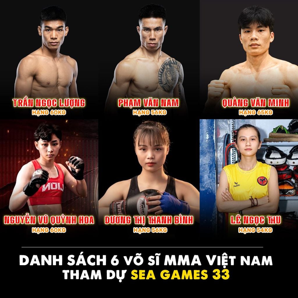 Đoàn MMA Việt Nam được công bố có 6 võ sĩ, trong đó có 3 nam và 3 nữ ở nhiều hạng cân khác nhau.