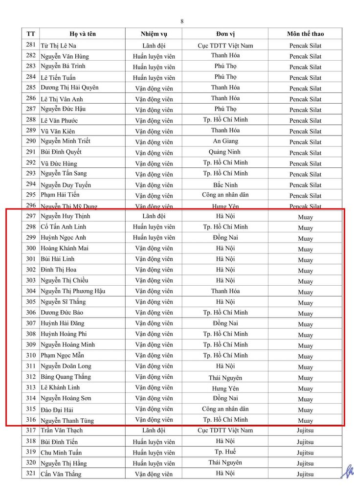 Dưới đây là danh sách đầy đủ của đoàn Muay Việt Nam tham dự SEA Games 2025.