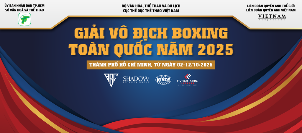 Giải Vô địch Boxing toàn quốc năm 2025 sẽ diễn ra từ ngày 2/10 đến ngày 10/10 tại Nhà Thi Đấu Đa Năng Phường Tân Thuận, TP.HCM.