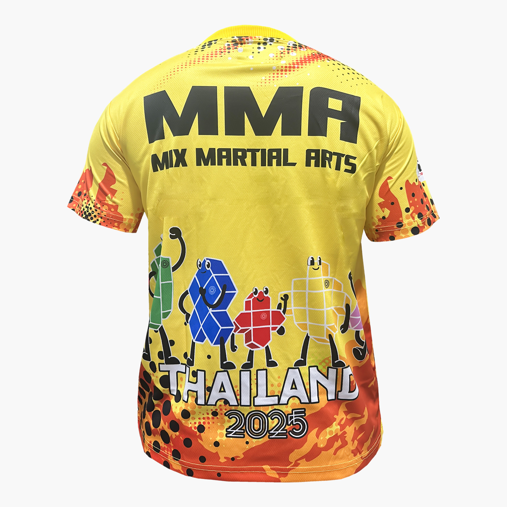Áo thun Fighter MMA MM05 mang phong cách thể thao hiện đại, nổi bật với tông đen – cam – vàng mạnh mẽ, thể hiện tinh thần chiến đấu và năng lượng của các vận động viên.