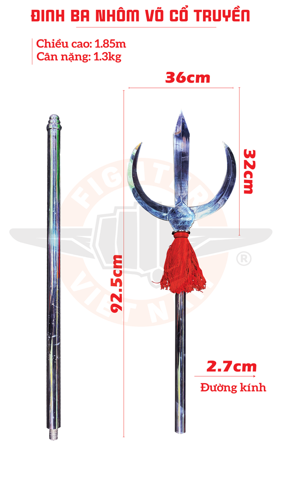 Đinh Ba Nhôm Võ Cổ Truyền là phiên bản bằng hợp kim nhôm của đinh ba cổ điển – một loại binh khí quen thuộc trong võ cổ truyền Việt Nam và Trung Hoa.