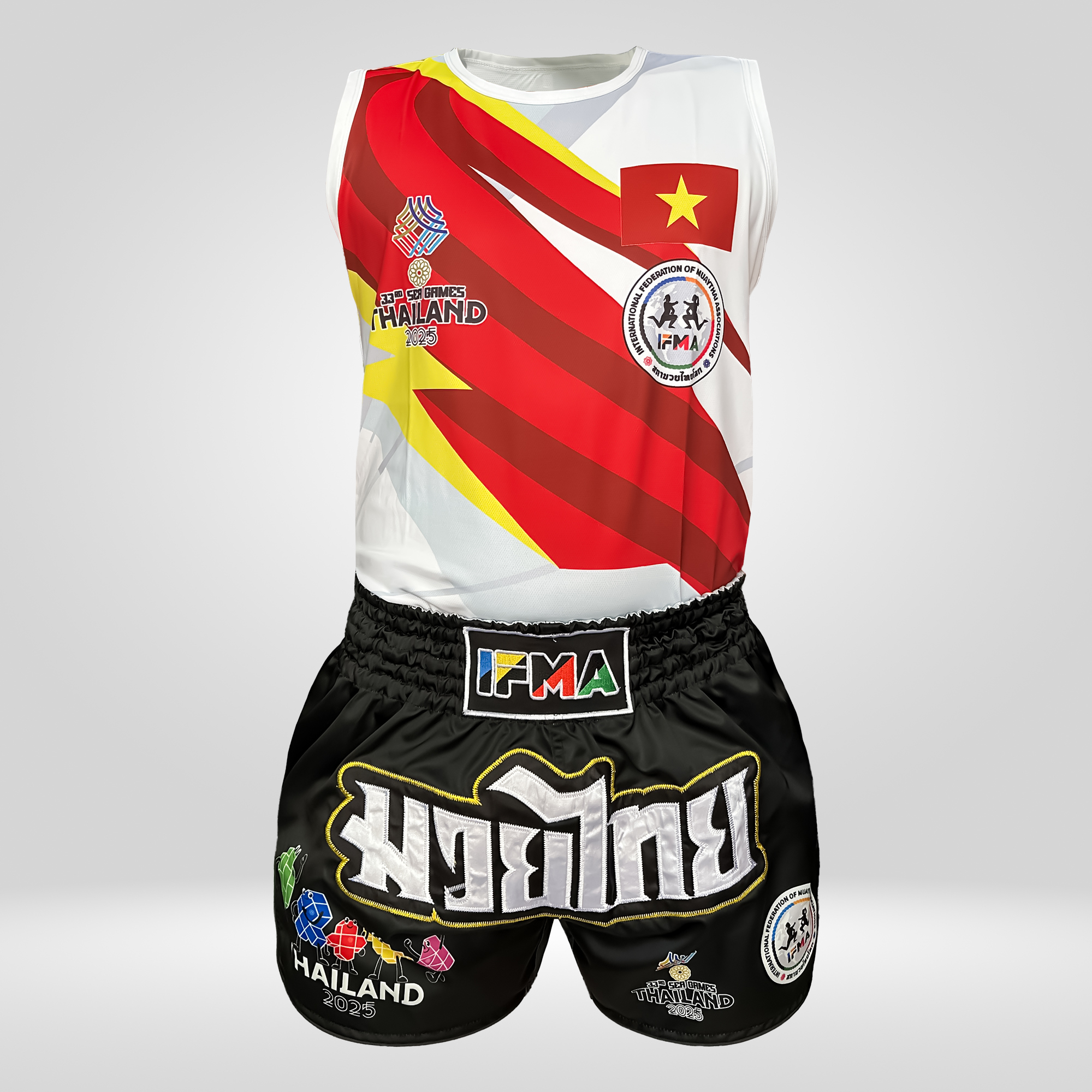 Quần Áo Muay Fighter IFMA - SEA Games 33 Thái Lan 2025 là trang phục chính của Đội tuyển Muay Việt Nam thi đấu tại SEA Games 33 ở Thái Lan.