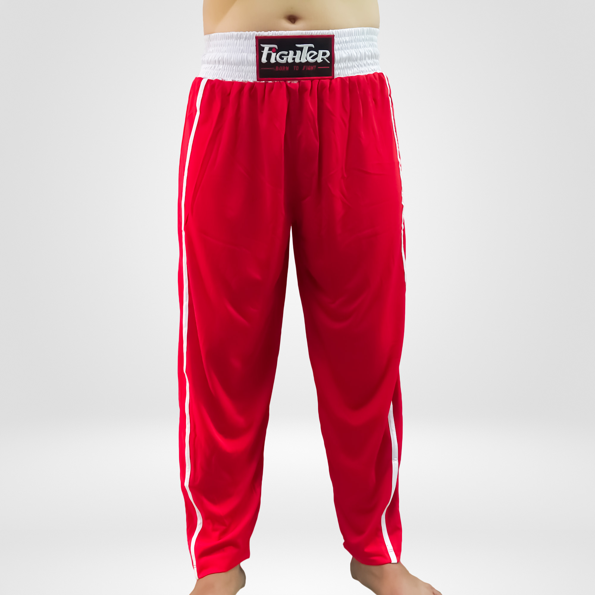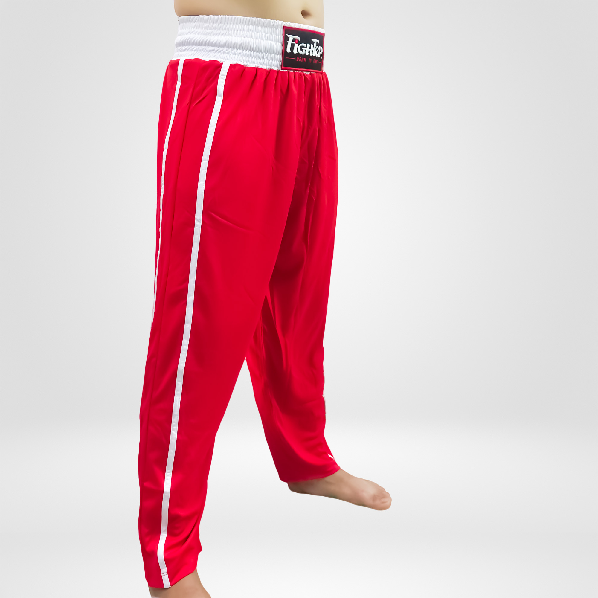 Quần KickBoxing Full Contact được may cẩn thận từ vải thun mè co giãn, đáy quần được may theo kiểu đáy niêm chuyên cho võ thuật, tránh rách đáy trong lúc tập luyện cũng như thi đấu.