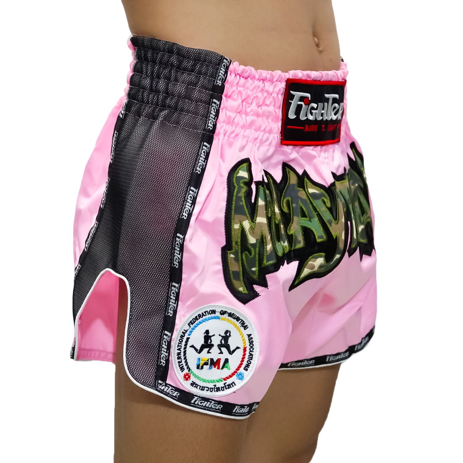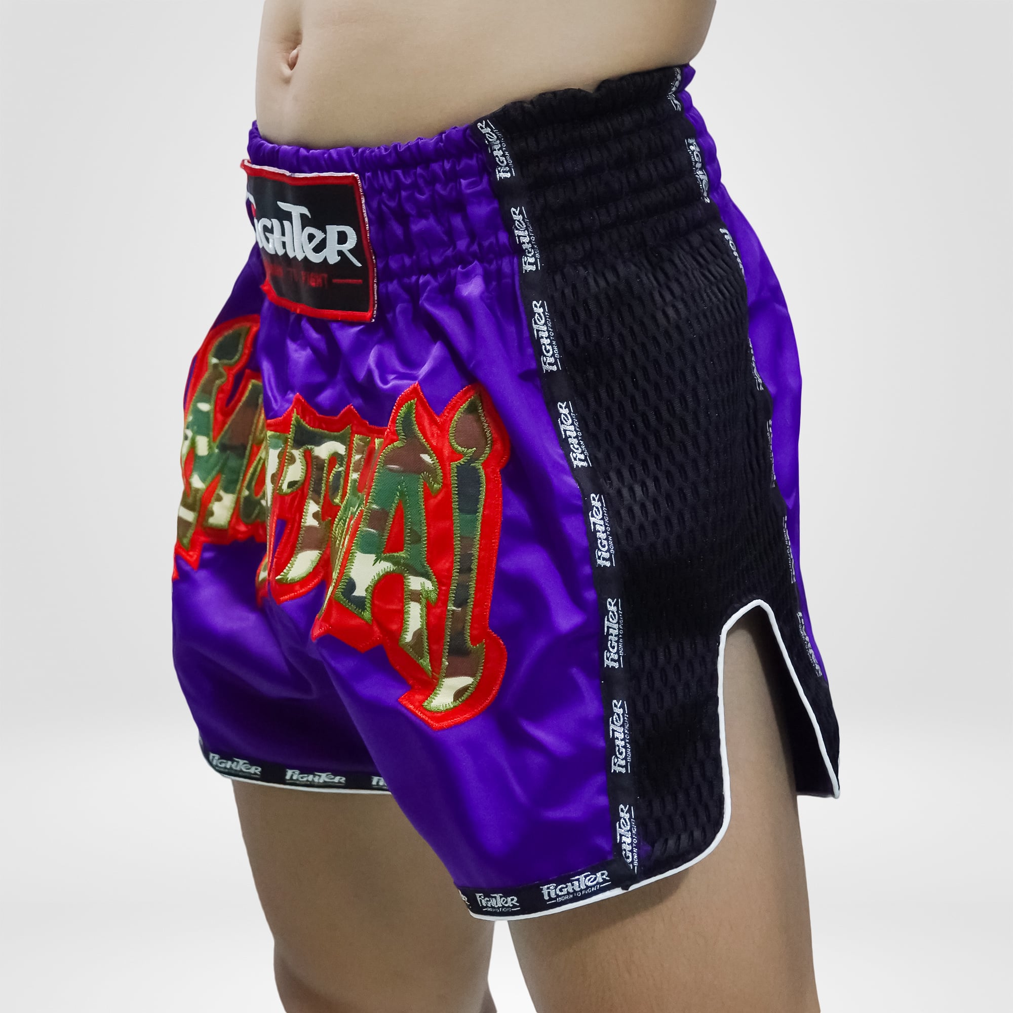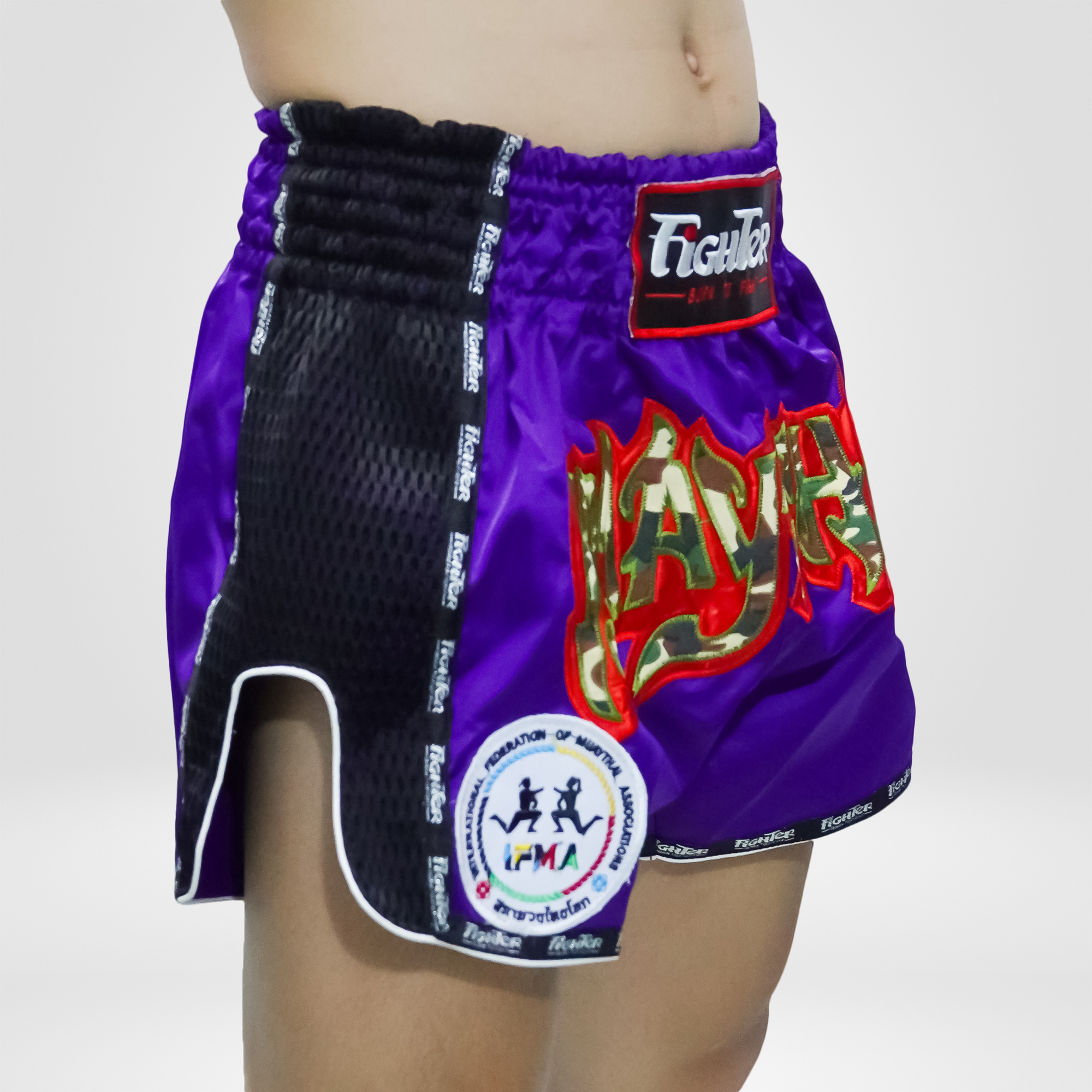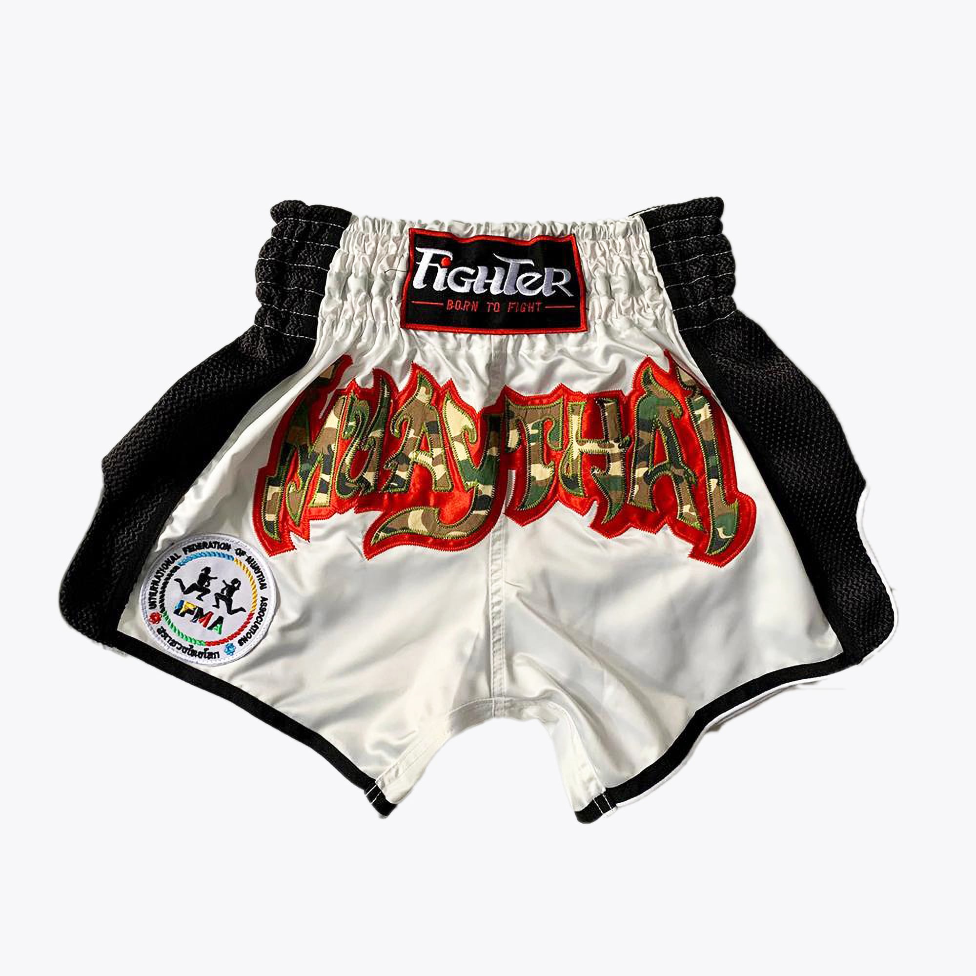Điểm nổi bật của Quần Muay Thái Fighter Cao Cấp là chất liệu vải dày, rất bền, các đường may được gia công tỉ mỉ, chắc chắn. Hai bên quần được xẻ vừa phải. Mặt trước quần được gắn Logo mang phong cách Army Muay Thái, kèm theo đó là Logo của Liên đoàn Muay Thế giới được thêu gia công cực kỳ cẩn thận và đẹp.